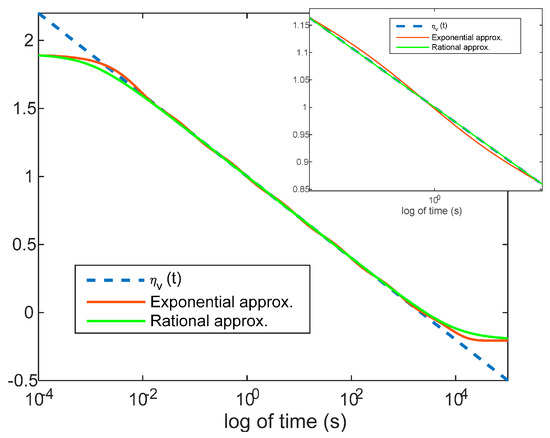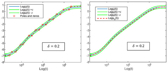 For the second step of this strategy, there are many methods that allow rational interpolation [22,23,24,25,26]. But these methods are not well adapted to fractional behaviors, that is to say with time behaviors with slow convergence. On the other hand, when working in the logarithmic domain as in the methodology we propose, a time compression occurs which facilitates fitting over large time domains.