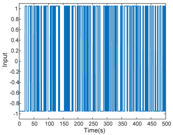 To generate data, the pseudo-random binary sequence of Figure 5 is used as an input of the transfer function . In Figure 6, the function estimated using the algorithm described above is compared to the function . It reveals a very accurate estimation of , with a quadratic error over data samples
