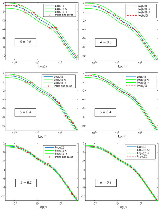 It must be noticed that the kernel is singular at time . With the method we propose, we can get as close as necessary to 0 with the approximation method developed as it is done on a defined time interval. The accuracy of the approximation then depends on the number of poles and zeros used in the approximation.