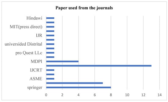 Google Scholar, IEEE Xplore, PubMed, and ScienceDirect were among the credible academic databases queried in a thorough literature search. “Swarm robotics”, “area coverage”, and similar topics were among the search queries. Publications published between 2015 and 2022 were eligible for inclusion in this review. We aimed to cover the most recent trends and advancements in swarm robots within this period. Swarm robotics-based area coverage difficulties are the focus of a few articles. The main focus areas are exploration, monitoring, mapping, foraging, and similar activities. Publications in high-quality robotics-related peer-reviewed journals and conferences were given priority. This guaranteed that only works that have passed thorough academic evaluations were included. For reader accessibility and transparency, we included only papers whose entire texts were freely available online. The papers used from the journals are illustrated in Figure 2.
