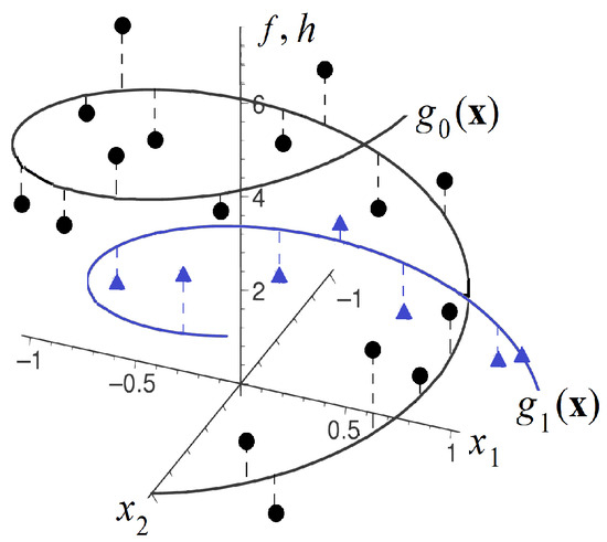 - Spiral functions: The feature vectors, having dimensionality d and being located on the Archimedean spirals, are defined for even d asand for odd d asValues of are uniformly generated from the interval for all numerical experiments;