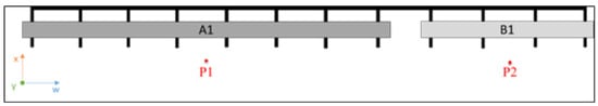- and denote the first and second positions that crane must visit to execute operation j. If j is an input operation, represents the interchange point between lift and crane , while denotes the storage location. Conversely, for an output operation, corresponds to the storage location, while indicates the interchange point between lift and crane .