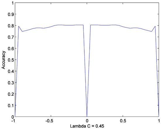 In the previous step, we showed that correntropy converges; the norm of error converges and converges to a constant term. In the case of constant , similar to [3], the error sequence constitutes a Cauchy sequence and because the mentioned probability space is complete, . Therefore,