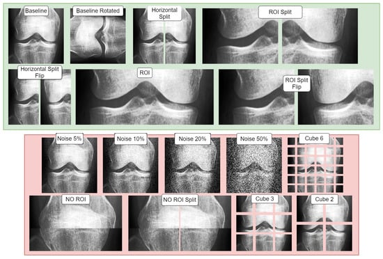 Adversarial (negative) augmentations, in the form of adversarial attacks, were explored in our study. It was observed that as the noise level increased, the models’ performance deteriorated, suggesting that the introduction of excessive noise could disrupt the discernment of relevant features within the images. Interestingly, the models lacking a Region of Interest (ROI) performed poorly overall. However, these models did exhibit exceptionally high performance for specific KL grades, such as KL0 and KL4, which may indicate the presence of confounding variables that the model leverages to make its predictions. The results for the “No ROI” and “No ROI Split” models were particularly intriguing. Despite the absence of a region of interest, the high-performance scores achieved by these models for specific KL grades suggest that they might be identifying other image features unrelated directly to knee joint osteoarthritis for classification decisions. In the case of KL0, the identical scores from the ‘Baseline’ and ‘No ROI’ models suggest either that the absence of an ROI may not affect KL0 classification or that true class confounds are visible. For KL4, the ‘No ROI Split’ model demonstrated performance remarkably similar to the ‘Baseline’ model, hinting at similar influences. The most notable result, however, was the clear performance boost for KL1 in the ‘No ROI Split’ model. This class is historically challenging to classify in Knee-Osteoarthritis studies, making this finding particularly interesting.