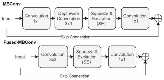 47] introduces an evolution in the form of the Fused-MBConv block. This new block design streamlines the architecture by combining the initial