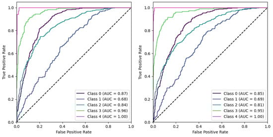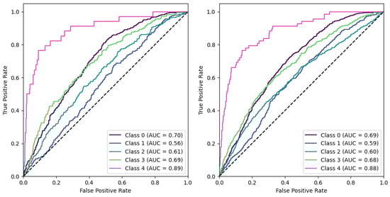 Furthermore, when evaluating performance, the recall metric offered an additional layer of insight. For instance, despite a slight drop in accuracy, the ‘Baseline’ model showed a higher recall than the ‘Baseline Rotated’ model, underscoring its capability to comprehensively identify relevant cases. This can be a critical consideration in fields like medical diagnostics, where certain classes might have greater consequences associated with misclassification. This observation revealed that when dealing with significantly skewed class distributions, utilizing the baseline modality may lead to more evenly distributed performance across the relevant classes.