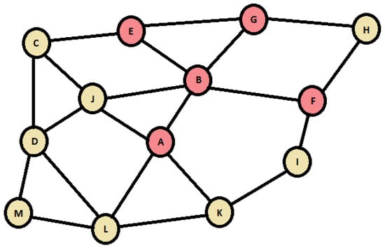 According to Douceur [], Sybil nodes illicitly claim multiple identities or fake IDs. Figure 1 depicts a Sybil attack, where a yellow node denotes legitimate ones and red nodes represent Sybil nodes. Sybil misleads the victim network during an attack when posing as legitimate, consequently redirecting traffic. For instance, node (A) mimics (H) to node (L) and (J) to node (K), causing traffic heading to node (A), which either forwards, alters, or blocks messages. Such a tactic extends to other red nodes. Attackers exploit victim nodes to wreak havoc, breach data, or lurk and launch attacks, yielding diverse outcomes. Such actions lead to malfunctioning networks with halted functions and data breaches entailing spoofed traffic between legitimate nodes. Also, it leaves manipulated networks that now meet attackers’ wishes, e.g., altered weather predictions that declare specific regions disaster zones [].