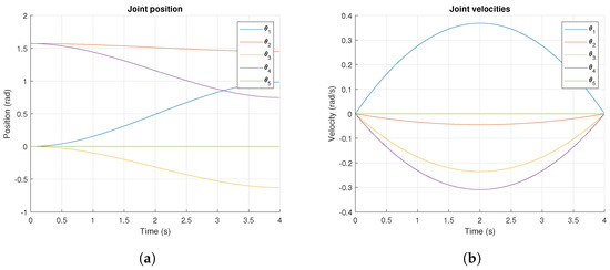 The joint positions and velocities for the motion planning are shown in Figure 16. Additionally, Figure 17 presents the final joint configuration along with the joint motion results measured by the encoders.