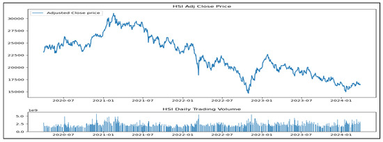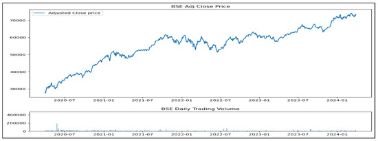 Information was gathered between 1 April 2020 and 31 March 2024. As a result of the COVID-19 pandemic in 2020, the financial market indexes went through a period of highly unpredictable volatility throughout the year, prompting us to select our era. The authors can employ comprehensive data from the whole duration of the COVID-19 pandemic, which had a profound influence on the global economy, to assess the effectiveness of the statistical deep neural network model. Figure 3, Figure 4, Figure 5, Figure 6, Figure 7 and Figure 8 illustrate the financial data used in this experiment. They comprise roughly 770–800 data points, corresponding to the total number of trades from April 2020 to 31 March 2024 as mentioned in Table 1.