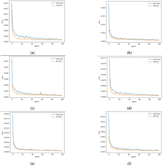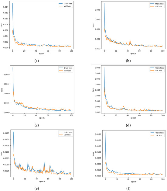 Training and value loss of all six Asian indices with BGRU model training. (a) Training and value loss for BSE index with BGRU Model; (b) training and value loss for HSI index with BGRU Model; (c) training and value loss for TWII index with BGRU Model; (d) training and value loss for JKSE index with BGRU Model; (e) training and value loss for JPXGY index with BGRU Model; (f) training and value loss for KS11 index with BGRU Model.