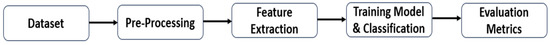 Figure 3 shows the various steps, such as data acquisition, data labeling, definition of the feature set, classification, and calculation of evaluation parameters.