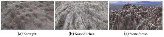 In terms of the classification of karst landforms, their morphology mainly shows the network structures of holes and cracks. Among them, the typical karst surface morphology includes karst pits, karst ditches, and stone forests [17]. In order to clarify the definition of these three landscapes, researchers have defined their forms.