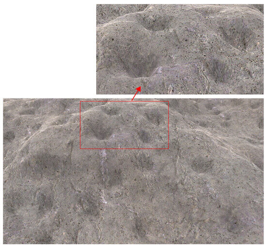 A karst pit refers to the hole-like landscape that is dissolved after the raindrops drop vertically on a rock surface. A raindrop falls under the action of gravity and absorbs carbon dioxide continuously in the air during the falling process. Its dissolution will cause splash dissolution to the rock, forming shallow holes, constituting to the initial form of a karst pit. Under the continuous dissolution of water flow, the holes gradually expand and deepen, forming a more obvious karst pit landscape. Figure 4 shows our simulated effect of a karst pit.