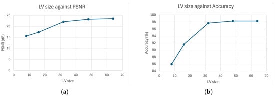 Effect of the LV size on (a) PSNR and (b) accuracy of prediction.