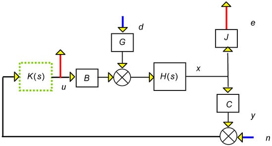 In Figure 6, K(s) is the controller, d is the disturbance, e is the error, n is the noise, u is the control voltage, and x is the state vector.