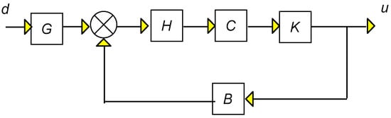 The given problem involves taking the disturbance (d) and measurement noise (n) as inputs and producing displacement measurements (y) and controller voltages (u) as the outputs. The provided structural diagrams and equations were employed to simulate this particular issue involving a beam and were implemented using MATLAB v. 5.0. In the frequency domain, the objective is to determine the optimal transfer function N. To achieve this, it is beneficial to derive the input-output relationships for the initial model [16,21].