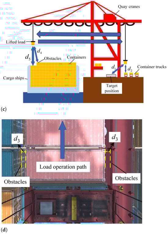 where is the distance between the container and the obstacle at time t. The value of the safety distance is set based on the safety regulations of remote-controlled quay crane operations and the average operating values of skilled drivers.