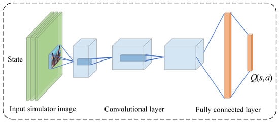 In this study, the DQN network model for driver operations is structured as shown in Figure 3. The input layer takes the current state of the spreader in the simulator as input. The loss function is set to the Mean Squared Error (MSE) loss, and the activation function used is the ReLU function. The optimizer is the Adam optimizer, which ensures stable training. The weights of the neural network are initialized using the Xavier initialization method, which helps mitigate the issues of vanishing and exploding gradients by keeping the variance of each layer’s output close to one. The evaluation network and the target network have the same structure, both using the network structure shown in Figure 3, but their update frequencies differ. The evaluation network is updated at every step, while the target network is updated only after a certain period, meaning that the parameters of the evaluation network are periodically copied to the target network.
