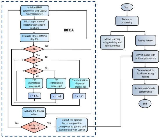 Least square support vector machines (LSSVM) have been widely used in the realm of load forecasting and have achieved good forecasting results. The optimization of LSSVM is necessary to improve the forecasting accuracy. The bacterial foraging optimization algorithm (BFOA) has achieved better results in many fields and using BFOA to find the optimal parameters of LSSVM helps to enhance the accuracy of the model. The hybridization of BFOA with back propagation neural network [10], multi-layer bidirectional LSTM [11], and ANN [12] for STLF have been found in the literature, which shows excellent performance in improving forecasting accuracy. However, this paper presents a novel approach by introducing the first application of improved BFOA hybridized with LSSVM for short-term electricity load forecasting.