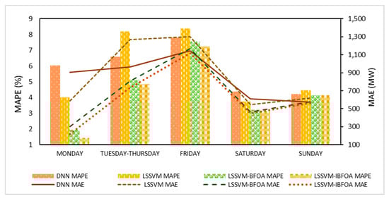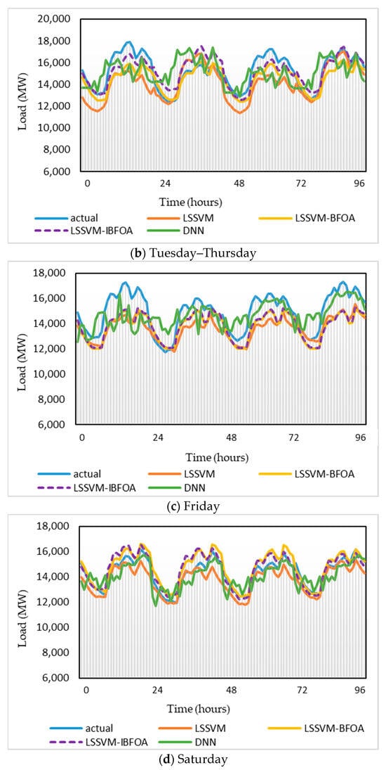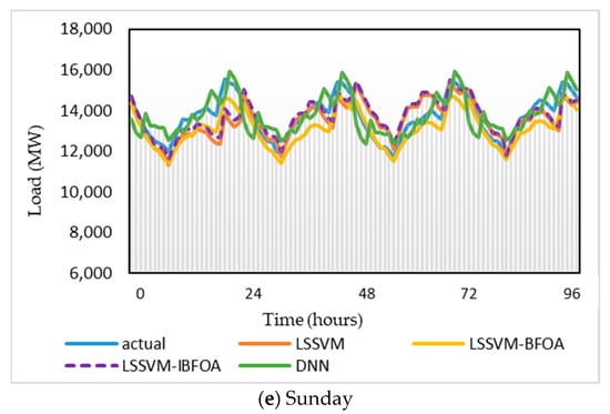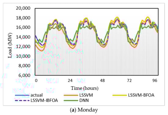Therefore, in this study, BFOA is selected to examine its suitability and performance when combined with LSSVM to forecast the load. Additionally, the bacteria’s constant step size and its movement during chemotaxis are modified using a sine cosine equation to improve BFOA, and the improved BFOA (IBFOA) is proposed. Further, the IBFOA is used for LSSVM’s parameters optimization. Therefore, the hybrid model for load forecasting based on LSSVM-IBFOA is established. The hybrid of LSSVM-IBFOA is applied for STLF of the electricity load in Peninsular Malaysia during the pandemic period. Consequently, the forecasting simulation illustrates the superiority of this hybrid optimization model in comparison to three models: deep neural network (DNN), LSSVM, and LSSVM-BFOA. The main contribution of the paper is as followings: