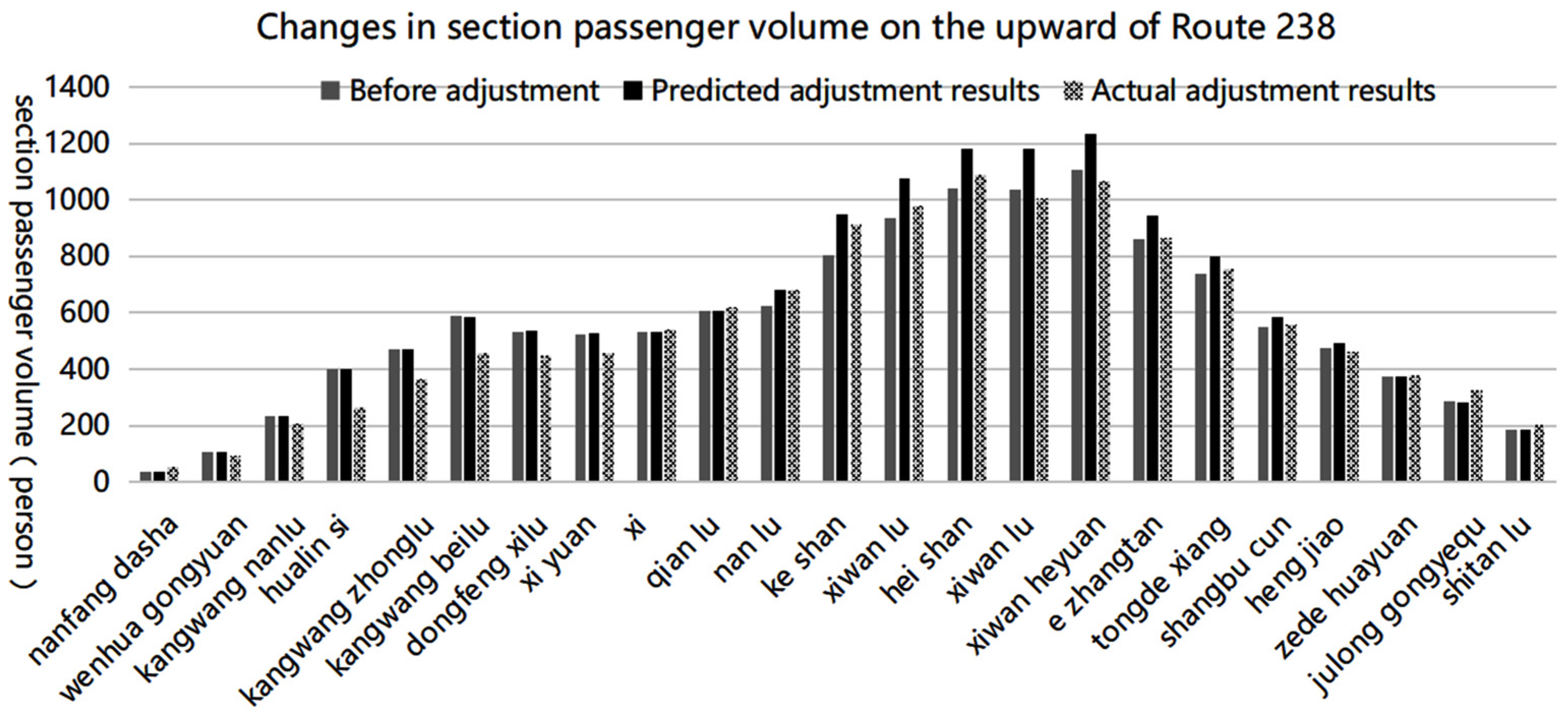 - According to the tracking of passenger samples before and after adjustment, the proposed method demonstrates an accuracy rate of 89.6% in estimating changes in trips (both direct and transfer). Moreover, changes in passenger flows and line section traffic volume closely align with actual observed outcomes.