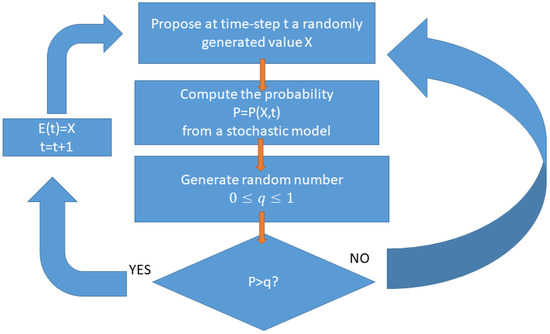 Commonly referred to as Monte Carlo simulation, the synthetic data-generating algorithm consists of a random process driven by a known probability distribution over the states of the system [12,13]. Figure 3 introduces our implementation that generates a synthetic epileptic marker according to probabilistic rules with variable predefined parameters.