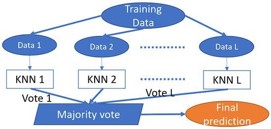The ensemble KNN classifier example; each dataset is composed of 65 random features. In this setup, 30 KNN classifiers (learners) are activated, and the final prediction is determined by a majority vote.
