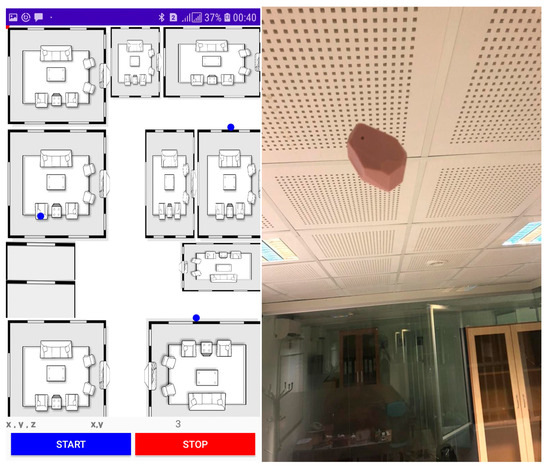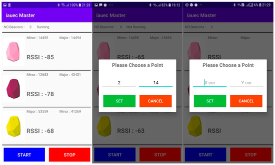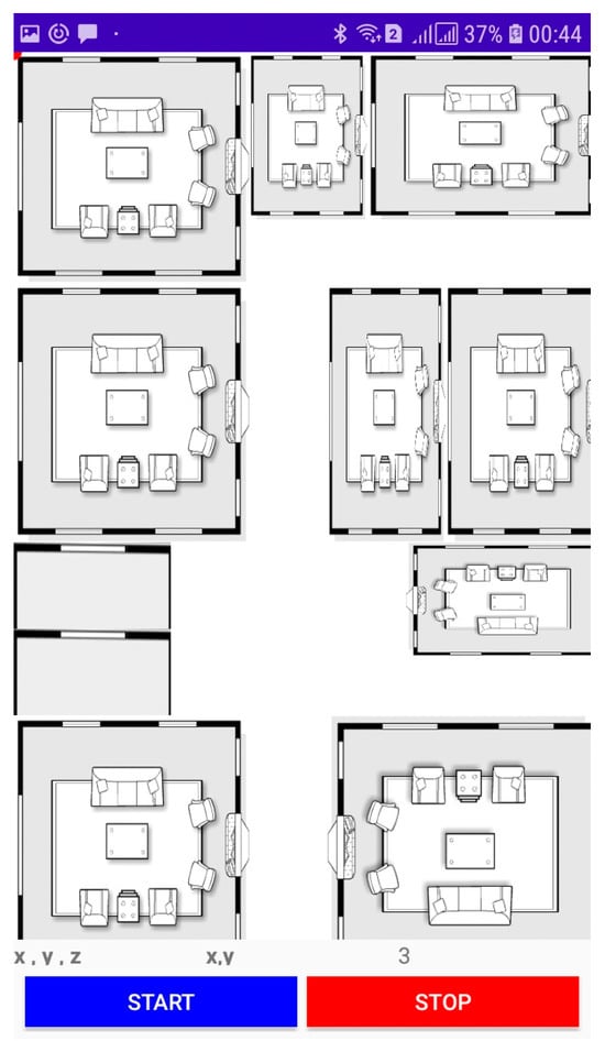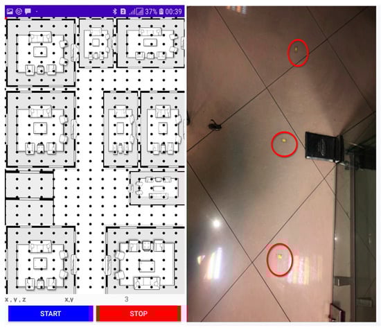In this section, after configuring the server, creating the back-end structure for data storage, and implementing the sampling application, 47 points including the main corridor of space and 4 rooms are selected as the main sampling points to perform the operation of training data storage. The user interface for the sampling phase, shown in Figure 6, allows the selection of specific points in the environment to capture RSSI values for localization purposes.