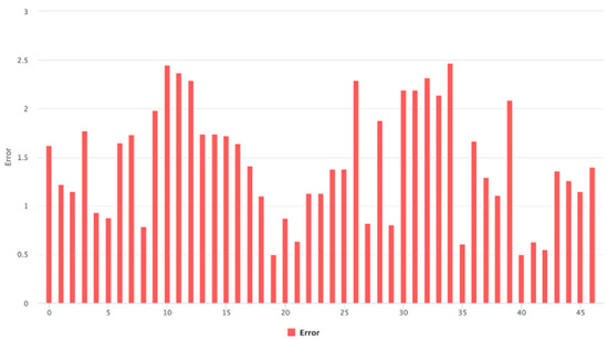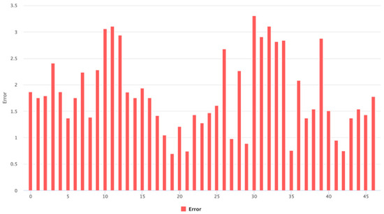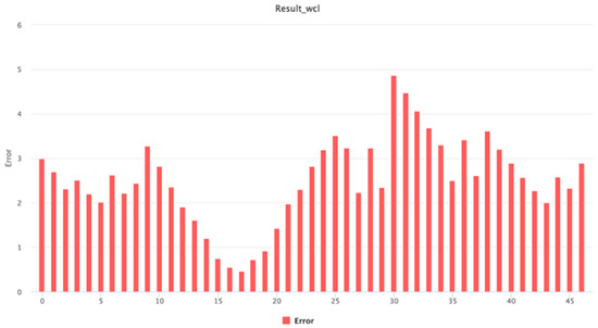 Bar chart of average error (in meters) at 47 points in the WCL method.