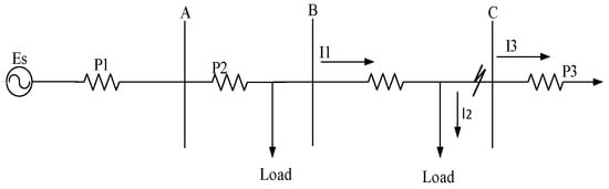 A typical line of a single-supply radial distribution network is shown in Figure 2.