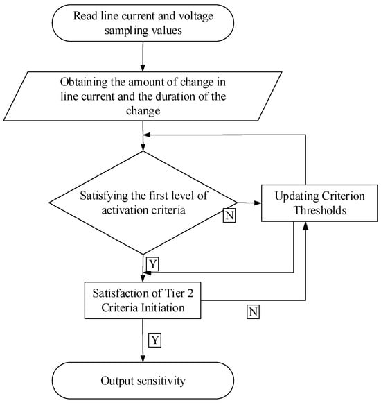 (1) The line current is monitored in real time. In the event of a change in the line current that does not exceed the threshold value of Criterion 1, the threshold value is adjusted in accordance with Equations (17) and (23).