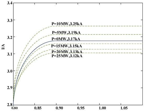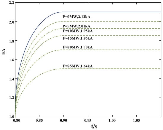 The impact of an inverter-based distributed generation system (IIDG) connected to the distribution network on the fault current is contingent upon its output power. Theoretical derivations indicate that when the output power of an inverter-based distributed generation system (IIDG) reaches its rated value, the fault current through the protective device will demonstrate a decreasing trend []. This suggests that the output power level of an IIDG has a direct impact on the monitoring of fault currents and the response of protective devices.
