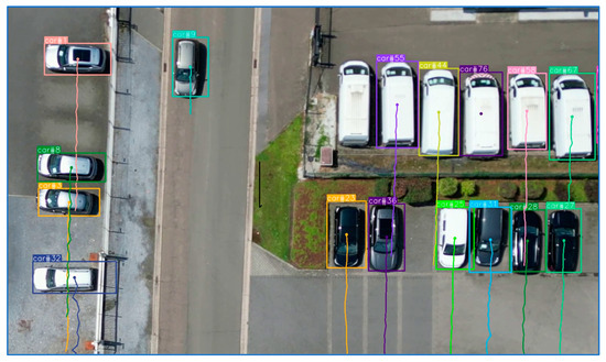 Correcting the vehicle tracks in the stationary drone footage is straightforward. However, tracking vehicles in moving drone footage presents greater challenges, as the drone’s movement introduces additional motion, affecting both stationary and moving objects (as shown in Figure 6). In these instances, a more rigorous approach is necessary for effectively removing noise from vehicle tracks.