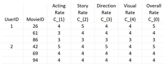 - Adomavicius, G.; Kwon, Y. New recommendation techniques for multicriteria rating systems. IEEE Intell. Syst. 2007, 22, 48–55. [Google Scholar] [CrossRef]