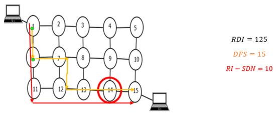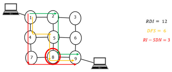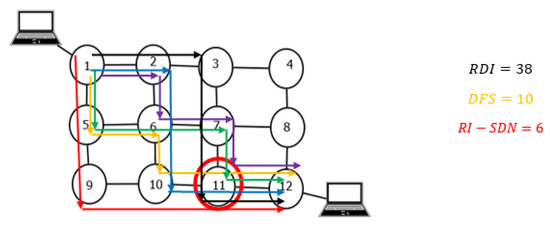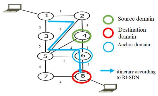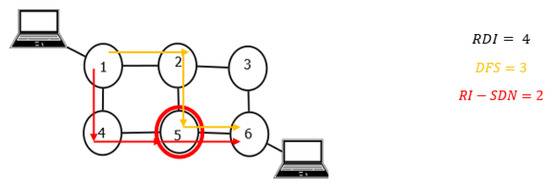 Figure 6 shows the key concepts of our method (i.e., RI-SDN) and the route provided by our method from the architecture illustrated by Figure 4.