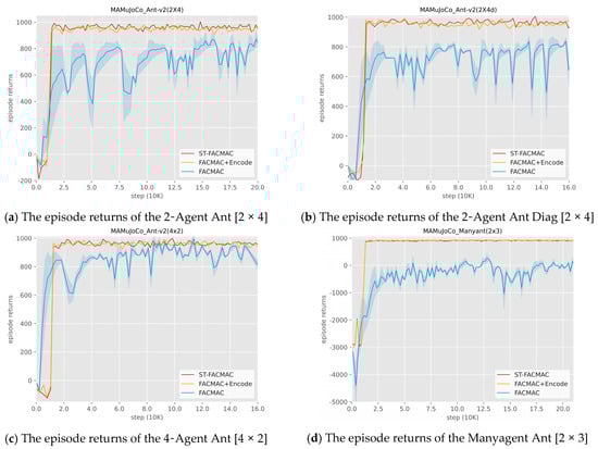 Furthermore, experiments validating the model based on local state transition mechanisms involved FACMAC, FACMAC+Encode, and ST-FACMAC, and the experimental results were shown in Figure 6: