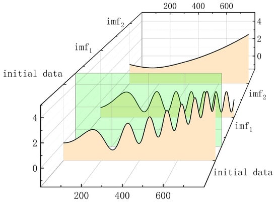 - Vibration signal data are collected from the rotating machinery system. First, the signals are decomposed using the EMD method to extract fault features. This process decomposes complex nonlinear and non-stationary signals into a series of IMFs, with each IMF representing a specific frequency component in the signal, thereby obtaining IMFs that reflect the system’s condition.
