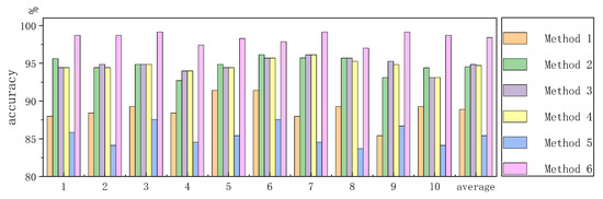 | Method 6 (EMD(3) & IMFE & LDA & SVM, proposed method) | 98.41% | 99.14% | 97.42% |