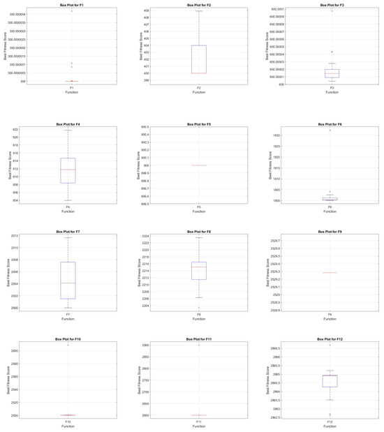 As presented in Table 9 and Table 10, the results for solving the planetary gear train design optimization problem demonstrate the performance of various algorithms, measured by the best fitness value () achieved, alongside the corresponding design variables ( to ).