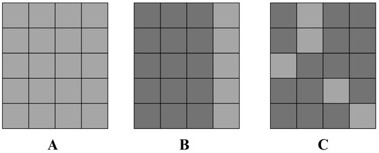 (A) Fully synthetic data. (B) Partially synthetic data. (C) Imputed data. Synthetic values in light gray and real values in dark gray.