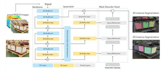 - Jain, A.; Katara, P.; Gkanatsios, N.; Harley, A.W.; Sarch, G.; Aggarwal, K.; Chaudhary, V.; Fragkiadaki, K. ODIN: A Single Model for 2D and 3D Segmentation. In Proceedings of the IEEE/CVF Conference on Computer Vision and Pattern Recognition, Seattle, WA, USA, 16–22 June 2024; pp. 3564–3574. [Google Scholar]