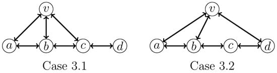Figure 7. Two cases that need to be considered when a vertex v has exactly three neighbors in an induced .For Case 3.2, we apply the following branching rule, which has a branching vector of and a corresponding maximum branching factor of : - Case