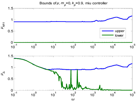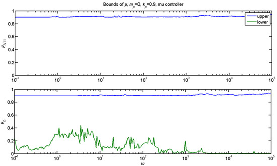 The μ-controller’s boundaries for mp = 0 and kp = ±0.9.