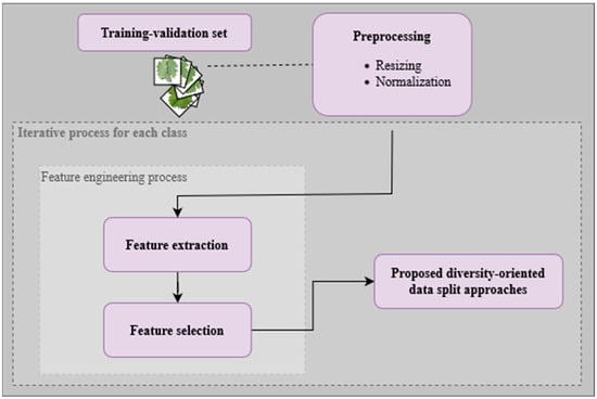To sum up, most of the data splitting-related works rely on techniques that can be computationally burdensome and time-consuming, such as KFCV. In contrast, single passages of HO techniques are likely to lead to uncalibrated datasets in terms of features—it is hypothesized that the presence of elements in training images that, if missing in the validation subset, cannot be confirmed and consolidated—potentially constraining the exploration of the full potential of the models. Therefore, this study proposes methods to work around the identified issues. The goal is to balance features during the training, validation, and test stages. Further details will be explained in the following section.