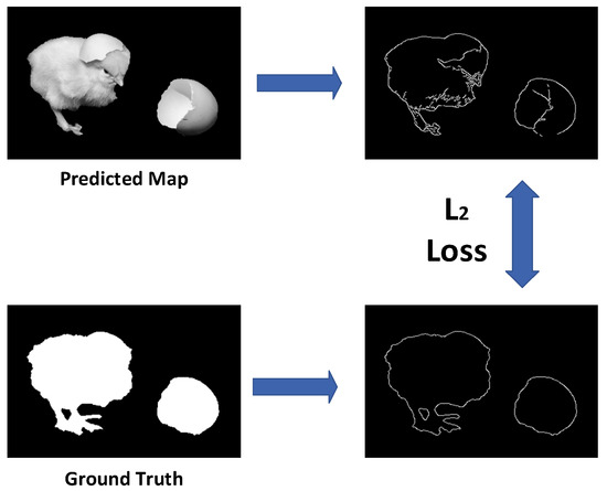 Overall, combining BCE loss and Canny edge detection loss, this paper proposes a novel loss function, namely, C2 loss. While U2Net effectively detects the salient objects, the edges of objects of predicted pictures are clearer. Figure 3 depicts the loss calculation process. The C2 loss can be expressed in the form as follows, where is the total loss, and is the learning weight for edge detection: