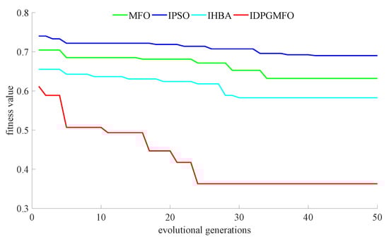 (II) The iterative convergence curve shows that the improved moth–flame algorithm proposed has a fast global convergence speed.