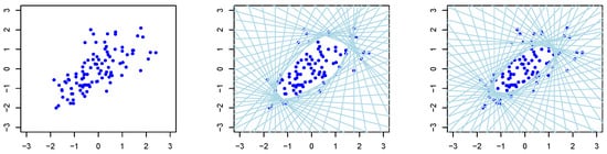 - Rousseeuw, P.J.; Ruts, I. Algorithm AS 307: Bivariate Location Depth. J. R. Stat. Soc. Ser. C 1996, 45, 516. [Google Scholar] [CrossRef]