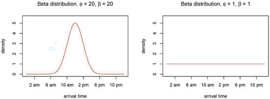 We assume that the arrival times are independent outcomes from a Beta distribution