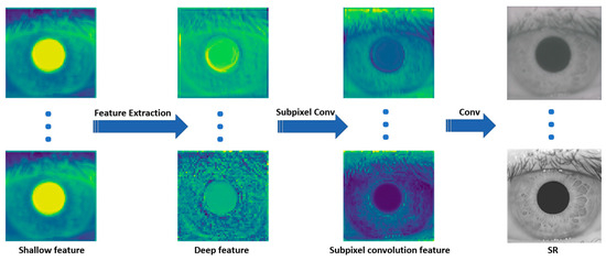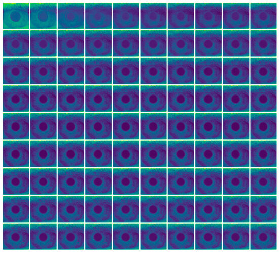 - Generate high-resolution images (HR images, 224 × 224): use the bicubic interpolation method to resize the iris images to a radius of 105 pixels and subsequently crop images into a resolution of 224 × 224 centered around the center of the pupil.