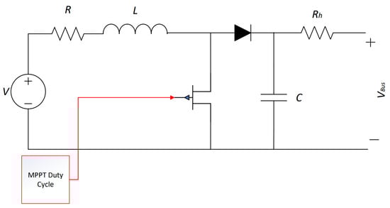 The efficient operation of each solar system necessitates maximum power point tracking (MPPT). This paper assumes that the maximum power points of a photovoltaic system have been monitored. The DC microgrid receives its power from the photovoltaic system’s maximum power output, which is a random number. The term “random" is employed due to the unpredictable nature of weather and the inherently random power generation by solar cells. The power generated may vary, sometimes falling short of consumption and occasionally exceeding it. To simulate variability and randomness, a pseudo-random number generator is employed to supply power, and simultaneously, a boost converter tracks these changes, generating the output power of these PVs. The duty cycle of the transistor in the structure of the boost converter, shown in Figure 2, is set by a random number matched with the maximum output power of PVs. This ensures that the boost converter can follow the maximum power points generated by the PV system.